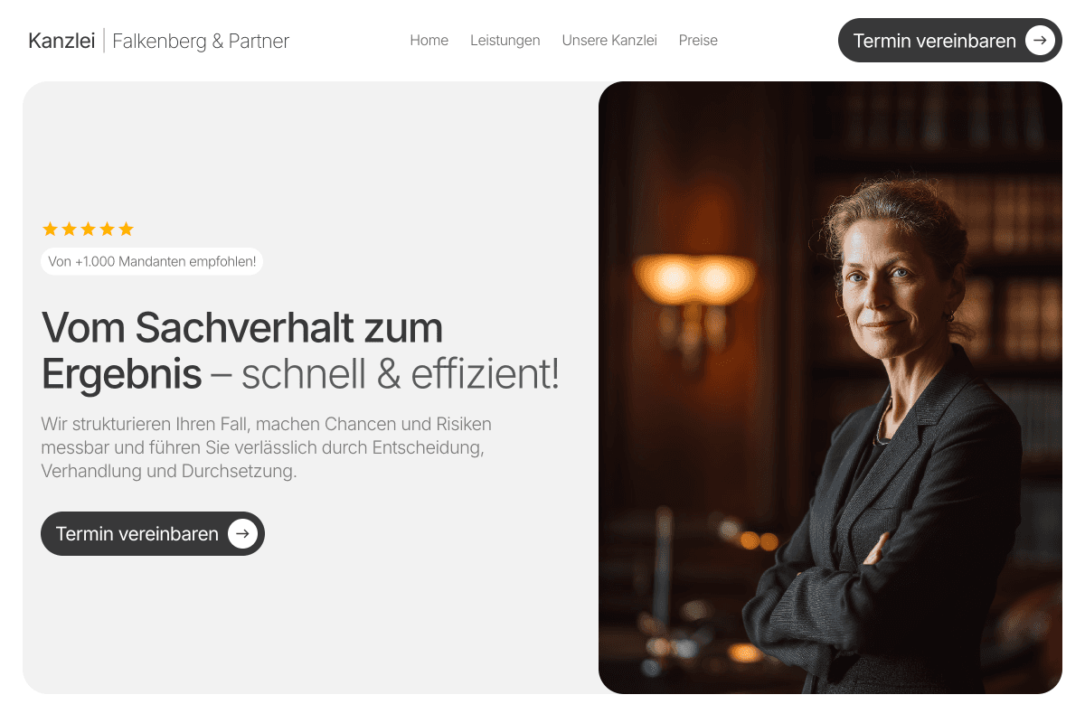 Ruhige Typografie, starke Lesbarkeit, Designsystem statt Template.